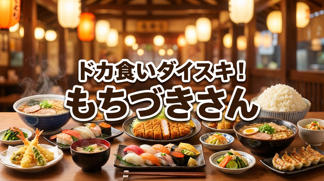 『ドカ食いダイスキ!もちづきさん』は、Amebaマンガで全3巻が配信中です。新規登録の100冊50%還元クーポンを使えば、定価2,277円のところ実質約1,139円で全巻まとめ買いできます。本記事では最安で読む方法を徹底解説します。