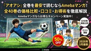 長編マンガの全巻まとめ買いに興味がある方は、『るろうに剣心』全巻をお得に読むならAmebaマンガ!全28巻の最安まとめ買い方法と電子書籍5社の価格比較【2026年2月最新】や、『君に届け』全巻いくら?本編30巻+番外編3巻=全33冊の最安値を徹底比較【2026年2月最新】もあわせてチェックしてみてください。