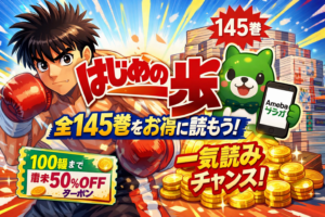 格闘漫画の金字塔『はじめの一歩』は全145巻という大ボリュームですが、Amebaマンガの100冊クーポンを活用すれば大幅にお得にまとめ買いできます。能力バトルの元祖とも言える『ジョジョの奇妙な冒険』シリーズも全9部が配信中。独特の世界観と「スタンド」バトルは、『進撃の巨人』の知略戦が好きな方にも刺さるはずです。また、推理漫画の最高峰『名探偵コナン』も電子書籍でまとめ買いする方が増えています。