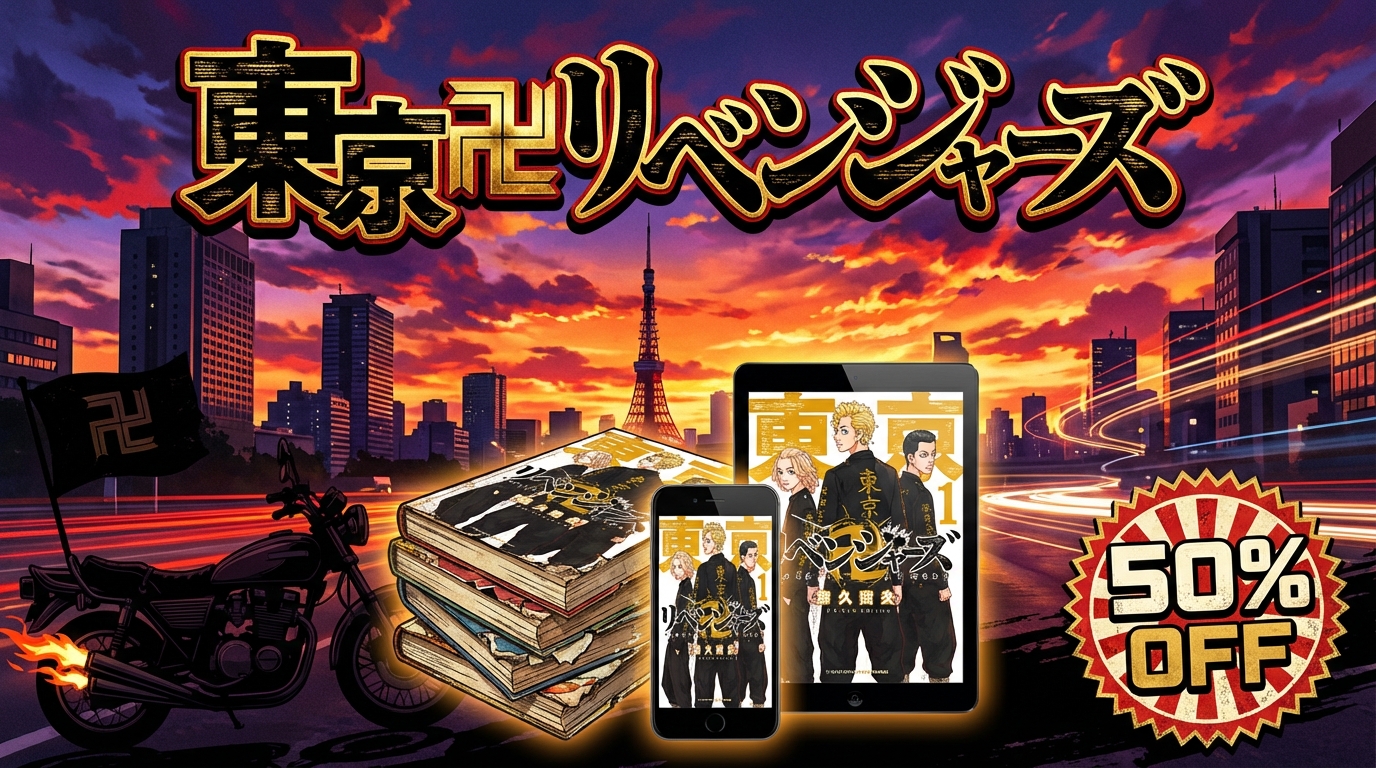 「東京卍リベンジャーズ」全31巻を最もお得に読むなら、Amebaマンガの100冊50%即時還元クーポンが最強です。定価18,414円(税込)の全巻セットが、実質約9,207円で手に入ります。本記事では主要電子書籍5社の価格を徹底比較し、最安で全巻を揃える方法を2026年2月最新情報でお届けします。